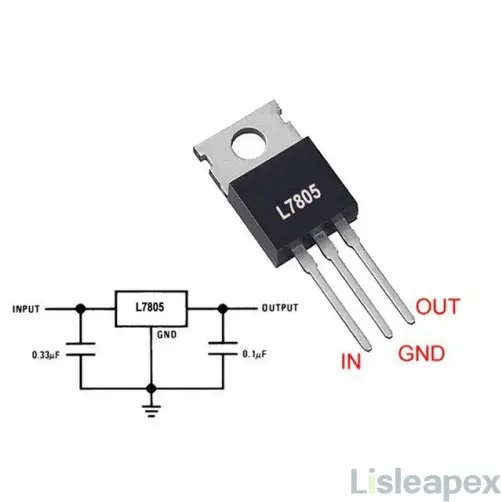 L7805는 3단자 방식의 고정형 5V 선형 전압 레귤레이터입니다. 입력 전압을 받아 내부에서 조정하여 항상 5V를 출력하도록 설계된 부품입니다.
