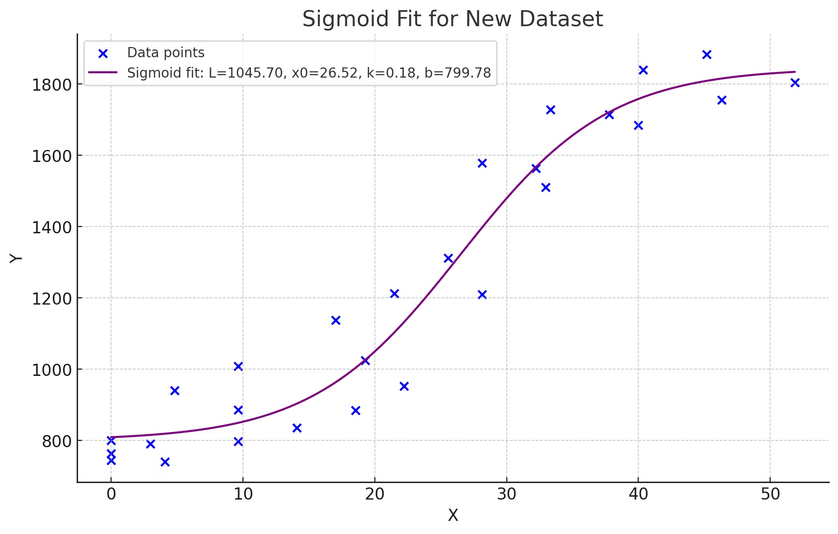 동생사의 경우에는 습도가 20% 이하, 그리고 40% 이상에서 기울기가 낮게나오고, 그 사이에서는 기울기가 좀 더 큰 모양으로 나타납니다. 이러한 특성은 마치 sigmoid 함수처럼 보이는데, chatgpt에게 sigmoid 함수로 fitting해 보도록하니 아래의 결과가 나옵니다.